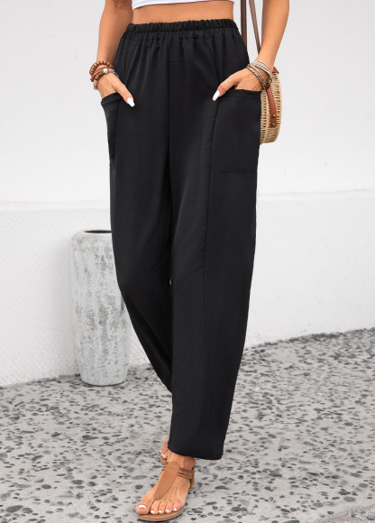 Black Pocket Elastic Waist High Waisted Pants