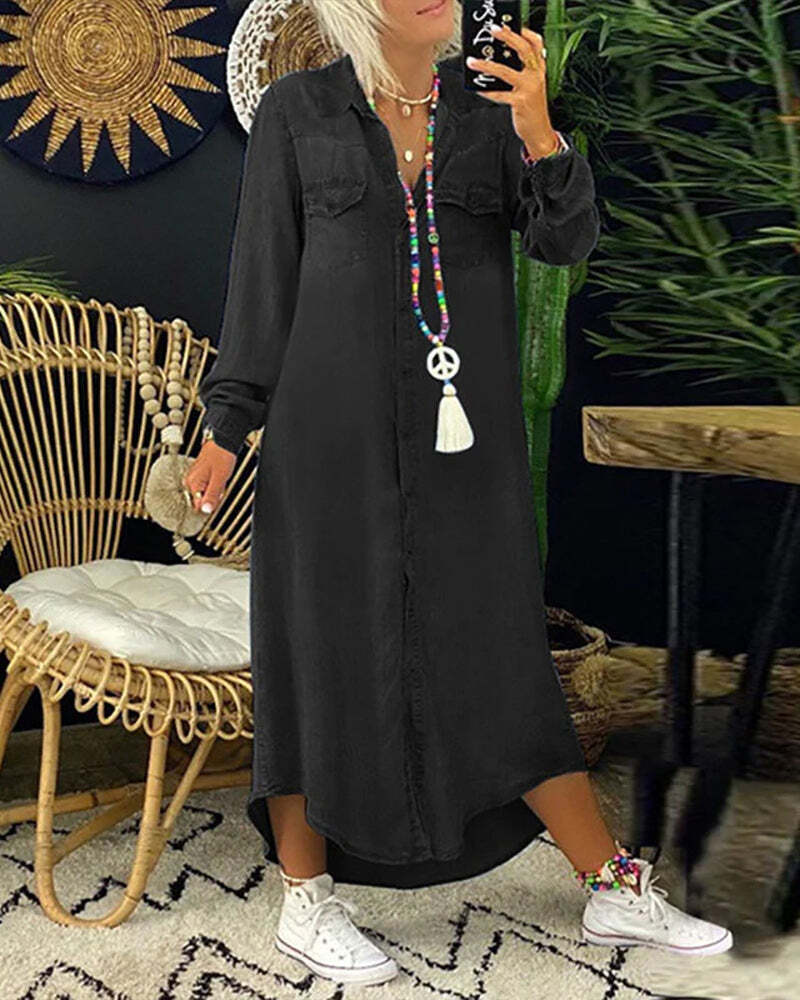 Women's solid color long sleeve denim dress